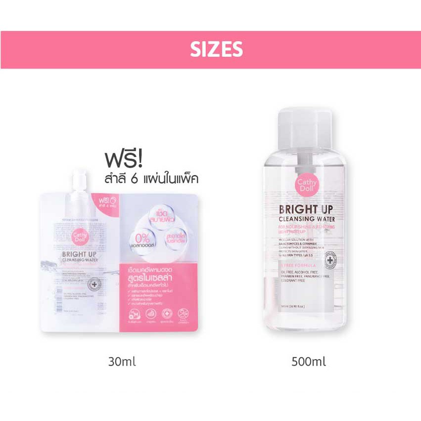Cathy Doll Bright Up Cleansing Water เช็ดเครื่องสำอางสูตรน้ำ ไมเซลล่า หมดจด