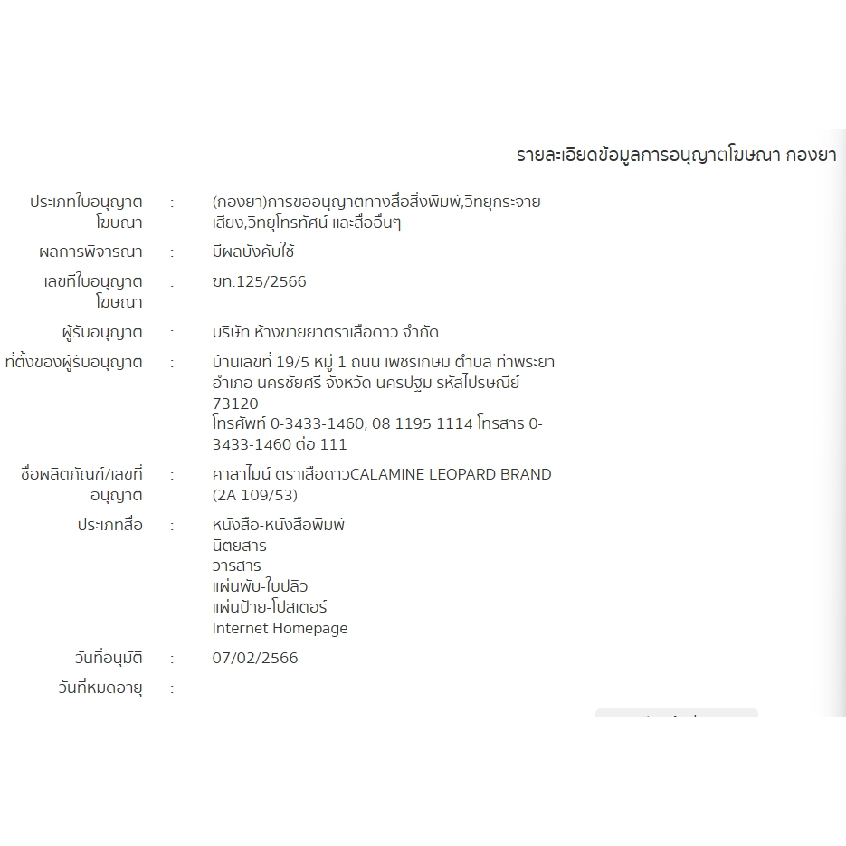 ตราเสือดาว Calamine 120 ML (2 ขวด)