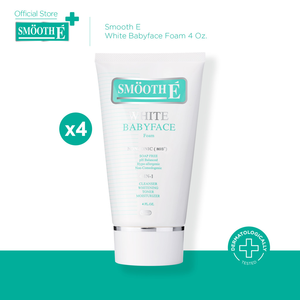 [แพ็ค4สุดคุ้ม] Smooth E White Babyface Foam 4 Oz. สมูทอี ไวท์ เบบี้เฟส โฟม pH5 Vit C&E ผิวกระจ่างใส สำหรับผิวหมอง