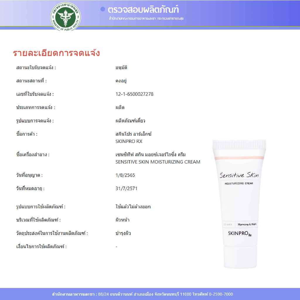 SKINPRO Rx Sensitive Skin Moisturizing Cream 8ml มอยซ์เจอร์ไรเซอร์บำรุงผิว สำหรับผิว บอบบางแพ้ง่าย ชุ่มชื้น ผิวแข็งแรง