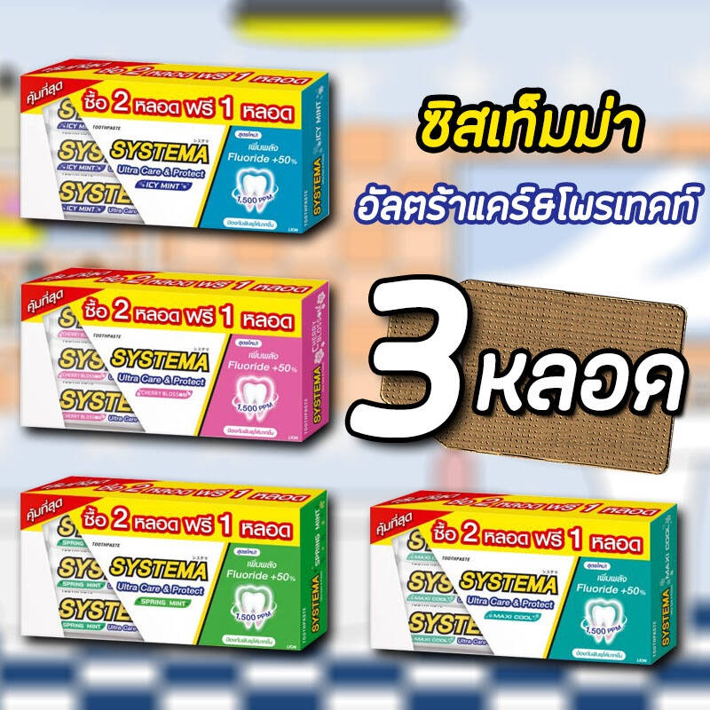 (แพ็ค 2 ฟรี 1) Systema Ultra Care & Protect Toothpaste 140g×3หลอด ยาสีฟัน ซิสเท็มมา อัลตร้า แคร์ แอนด์ โพรเทคท์