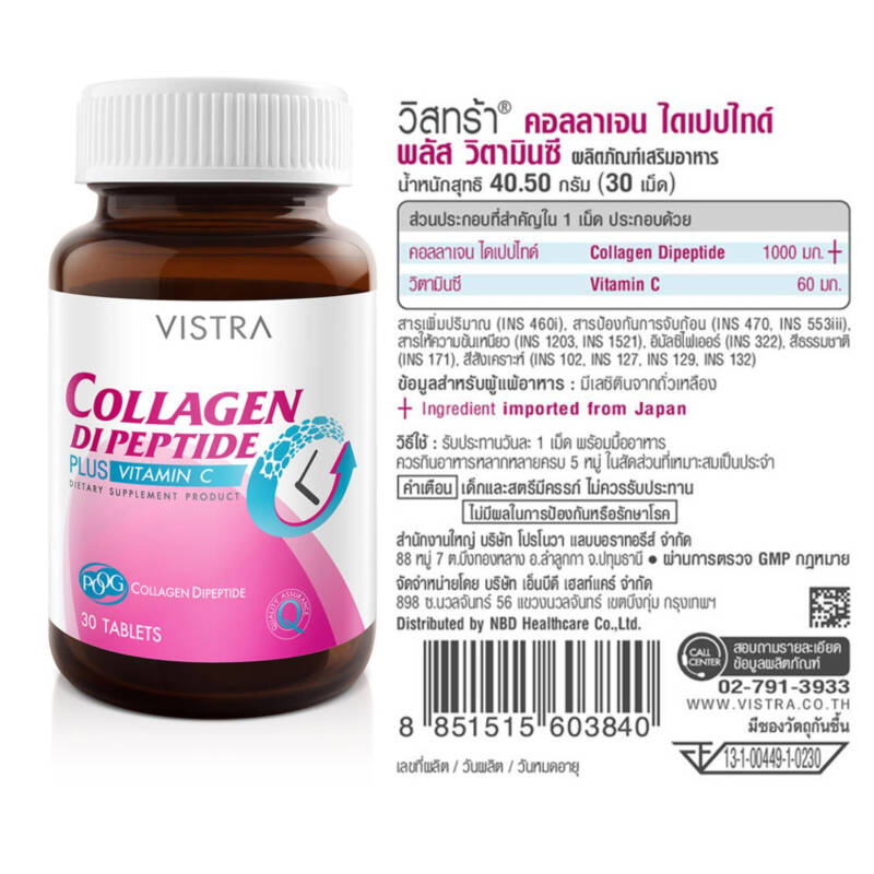 Vistra Collagen Di Peptide Plus Vitamin C 30 เม็ดและVISTRA Marine Collagen TriPeptide 30 เม็ด
