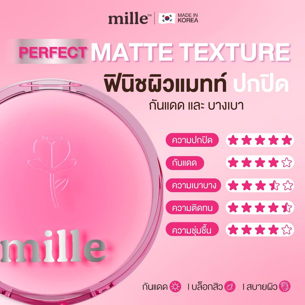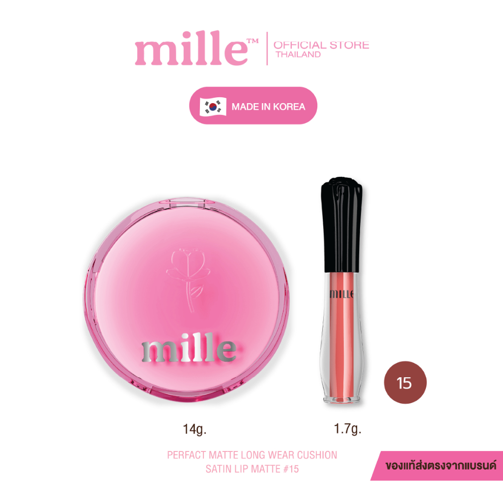 [1แถม1] Mille มิลเล่ เพอร์เฟ็กต์ แมทท์ ลอง แวร์ คูชั่น เอสพีเอฟ50 พีเอ+++ + Mille ลิปจิ้มจุ่มเนื้อแมตต์ 1.7g.
