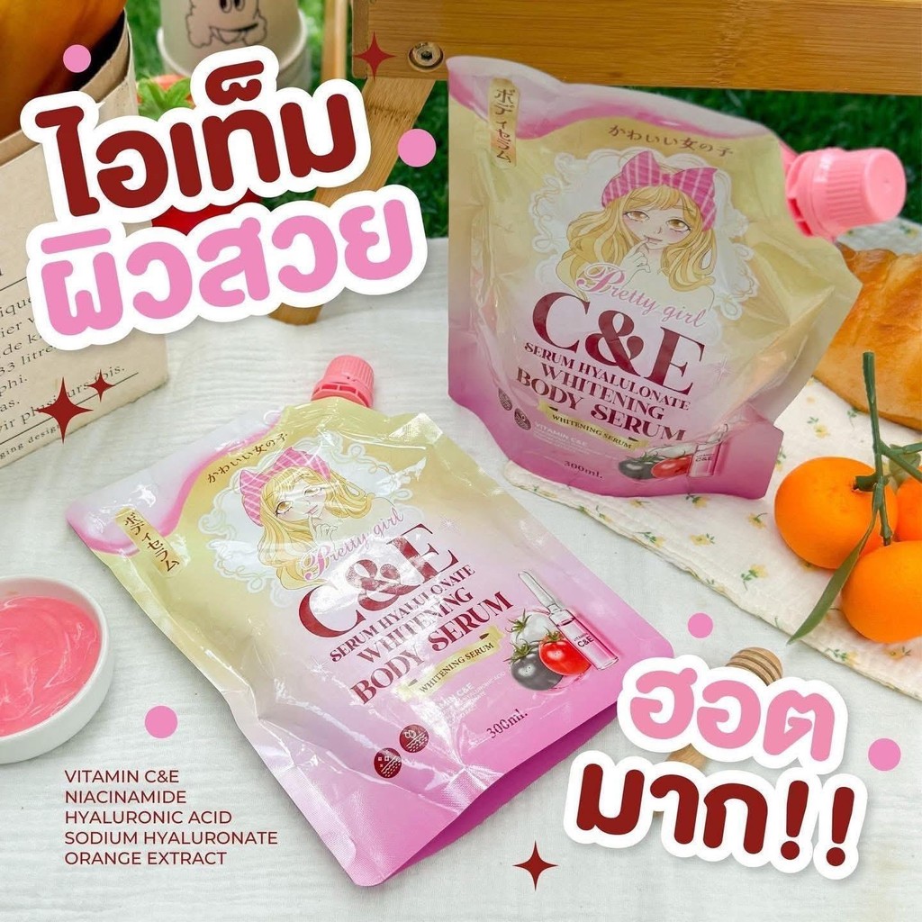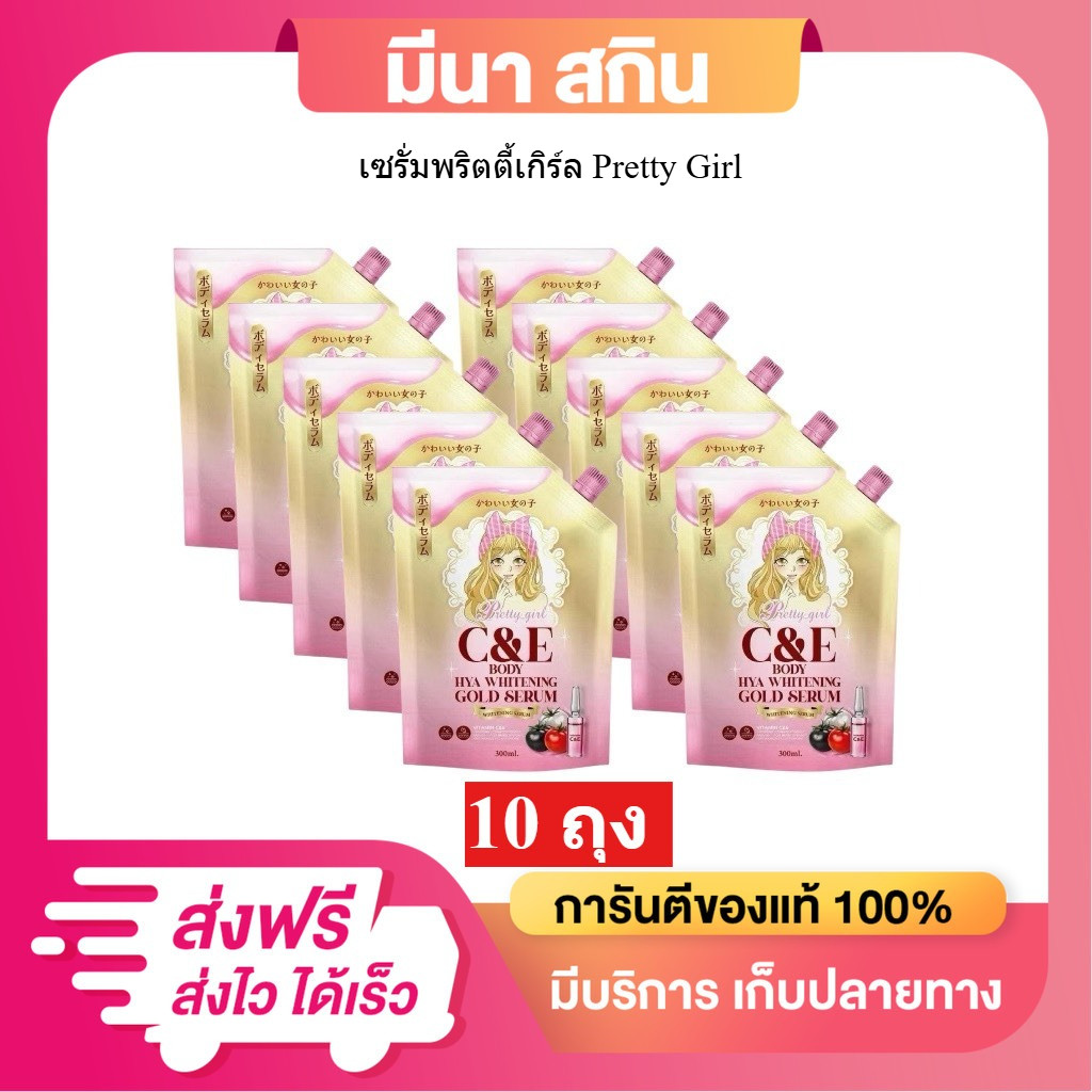 ( โปร10 ถุง ) Pretty Girl เซรั่มกลูต้าไฮยา พริตตี้เกิล์ล ไวท์เทนนิ่ง บอดี้ เซรั่ม 1 ถุง 300 มล.