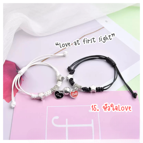 สร้อยข้อมือคู่ ลูกปัดคริสตัล พร้อมจี้และแม่เหล็กดูดติดกันเมื่ออยู่ใกล้กัน