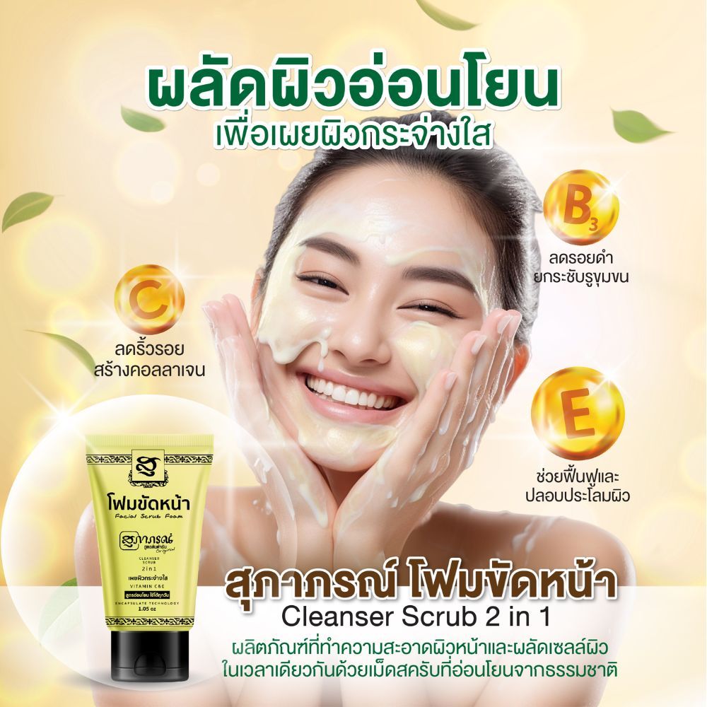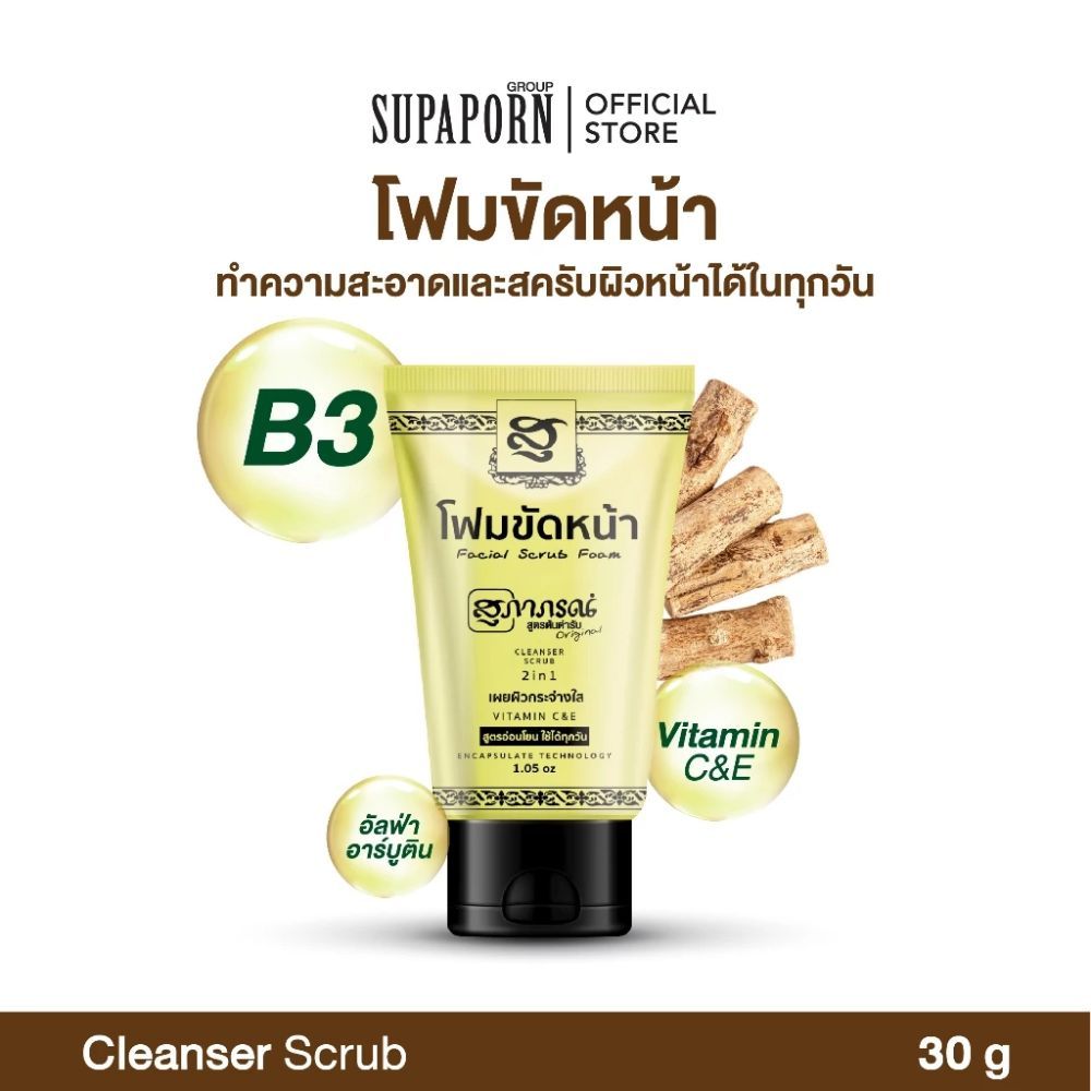 Supaporn Original Facial Scrub Foam สุภาภรณ์ โฟมขัดหน้า สมุนไพร สูตรอ่อนโยน 30g