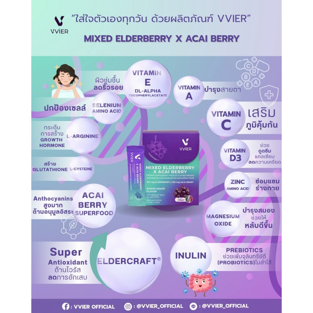 Vvier Mixed Elderberry X Acai Berry (150g) มิกซ์ เอลเดอร์เบอร์รี่ เอ็กซ์ อาซาอิเบอร์รี่ ผลิตภัณฑ์เสริมอาหาร