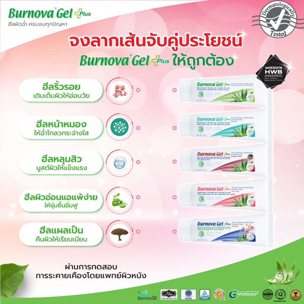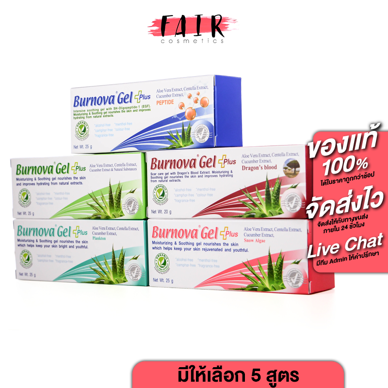 [มีให้่เลือก 5 สูตร] Burnova Gel Plus Aloe Vera/Plnkton/Dragon’s Blood/Snow Algae เบอร์นโนว่า เจล