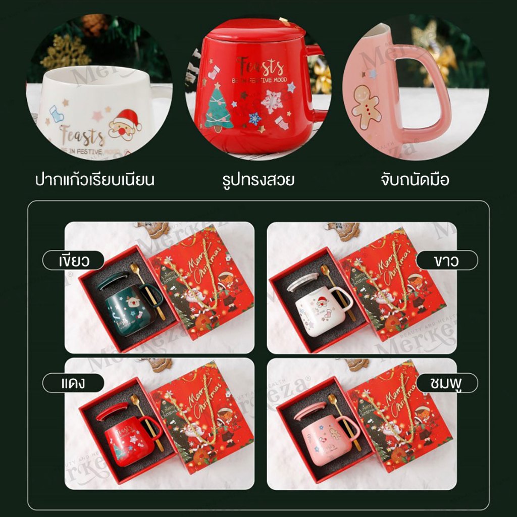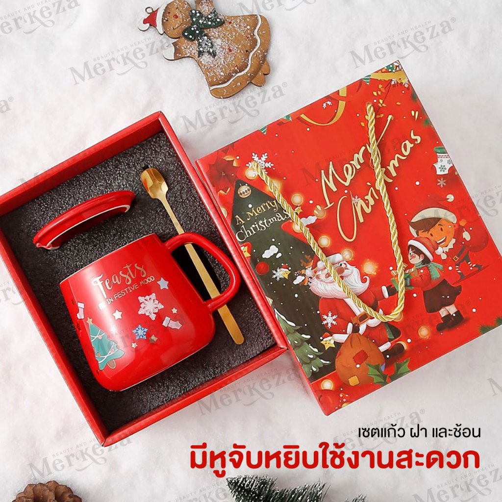 [SALE][มีกล่อง]Merkeza Christmas Glass Set ชุดแก้วคริสต์มาส ของขวัญปีใหม่ ของชำร่วย แก้วมัค แลกของขวัญ ซานต้า ถ้วย