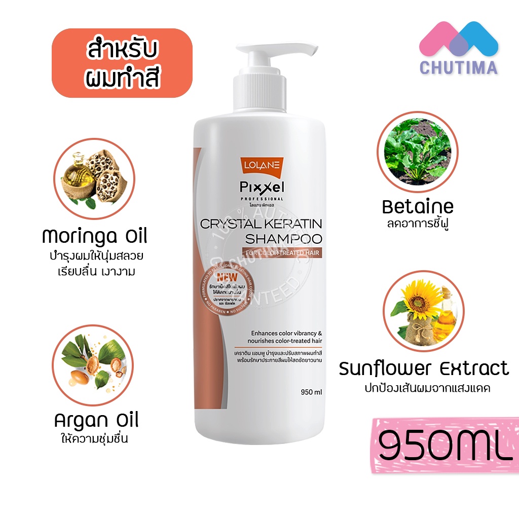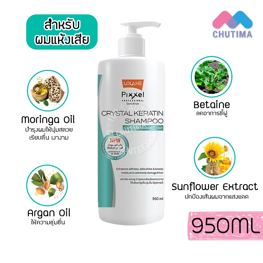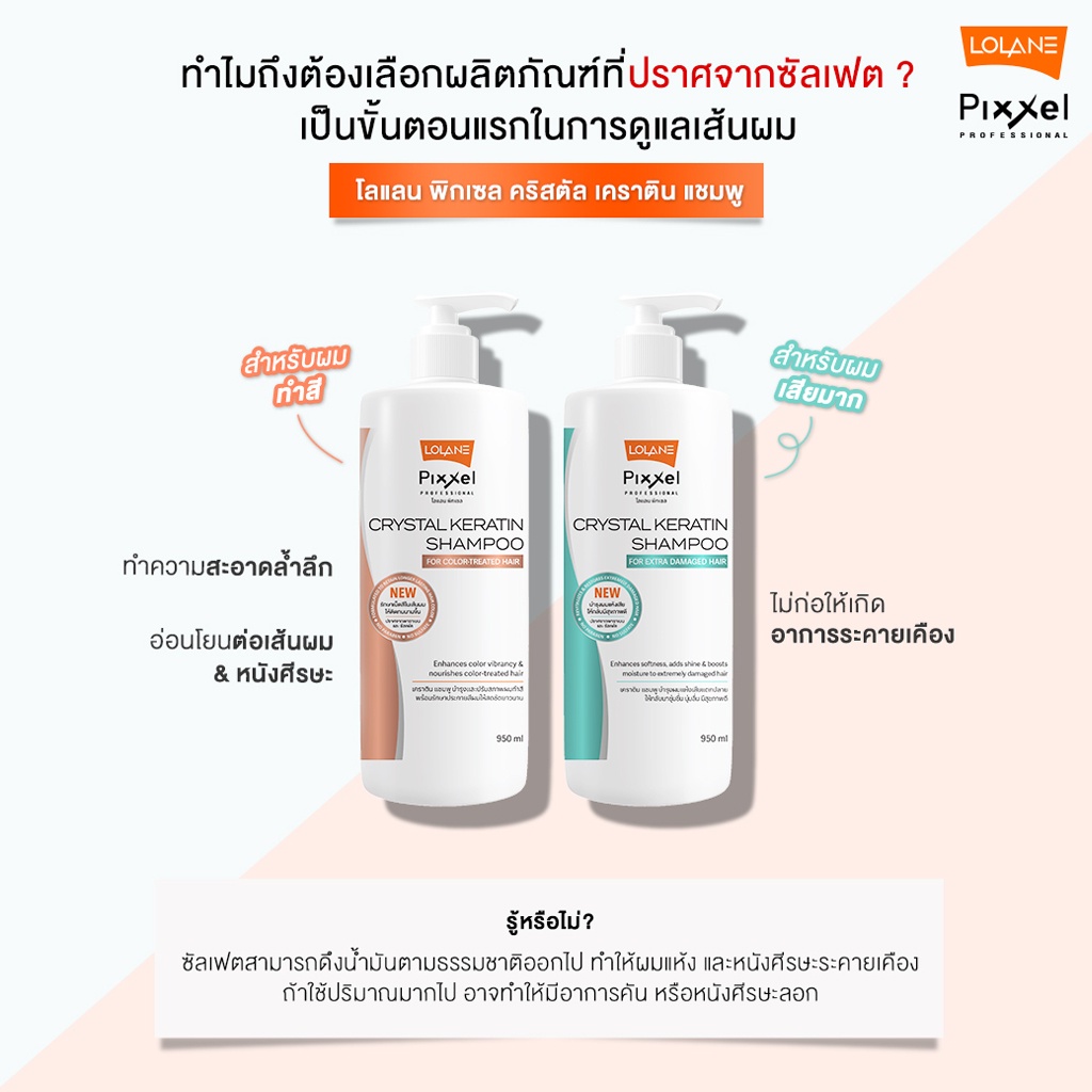 แชมพู โลแลน พิกเซล คริสตัล เคราติน สำหรับผมแห้งเสีย / ผมทำสี Lolane Pixxel Crystal Keratin Shampoo 950 ml.