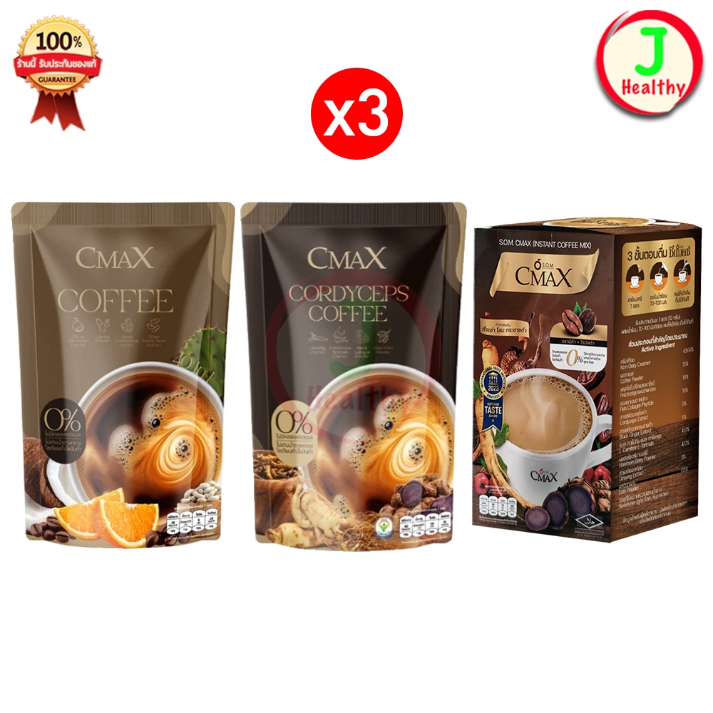 SOM CMAX กาแฟ เอสโอเอ็ม " PACK 3 "ซีแมคซ์ / CmaX Coffee (1 กล่อง/ถุง 10 ซอง x3)