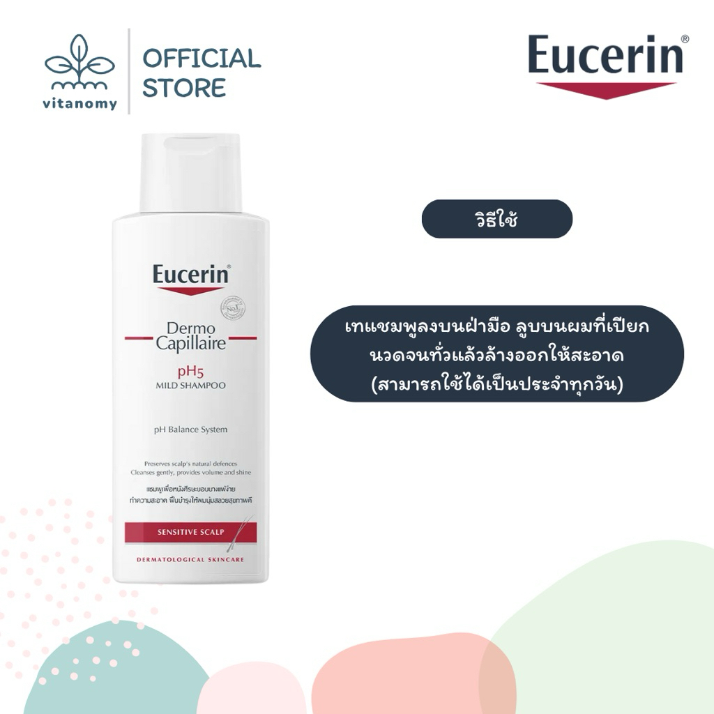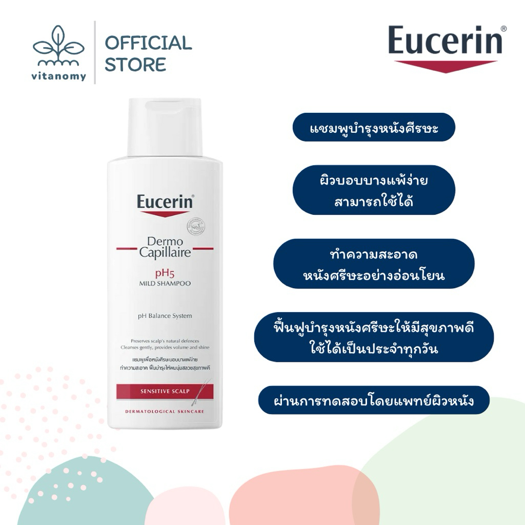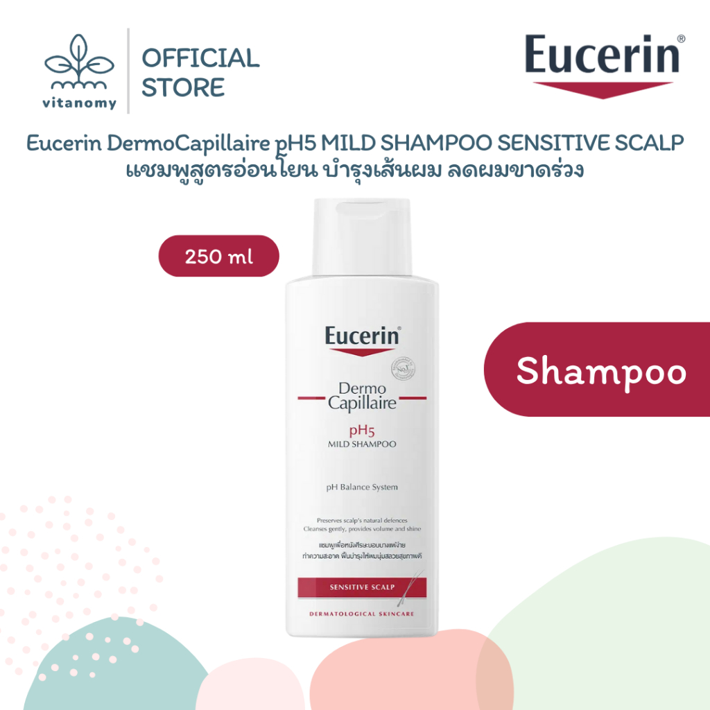 Eucerin DermoCapillaire pH5 MILD SHAMPOO SENSITIVE SCALP ยูเซอริน | แชมพูสูตรอ่อนโยนบำรุงเส้นผม ลดผมขาดร่วง | ขนาด 250ml