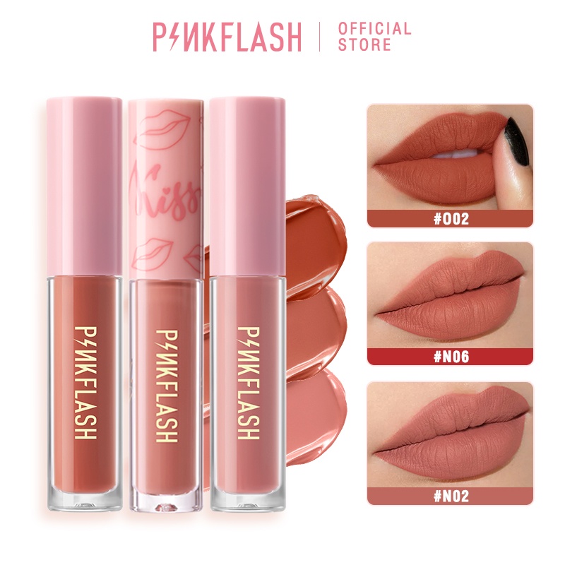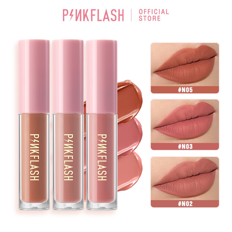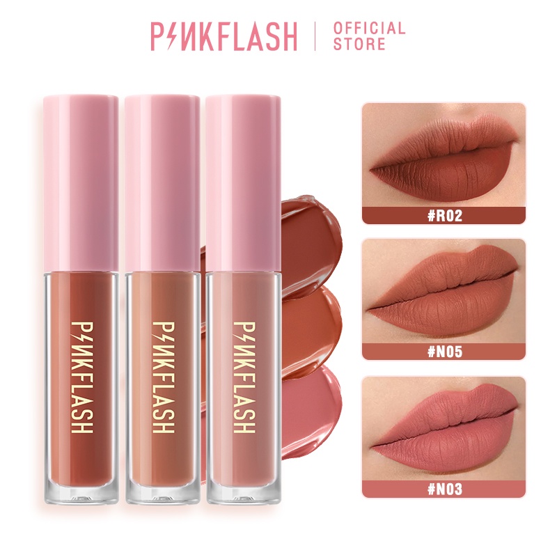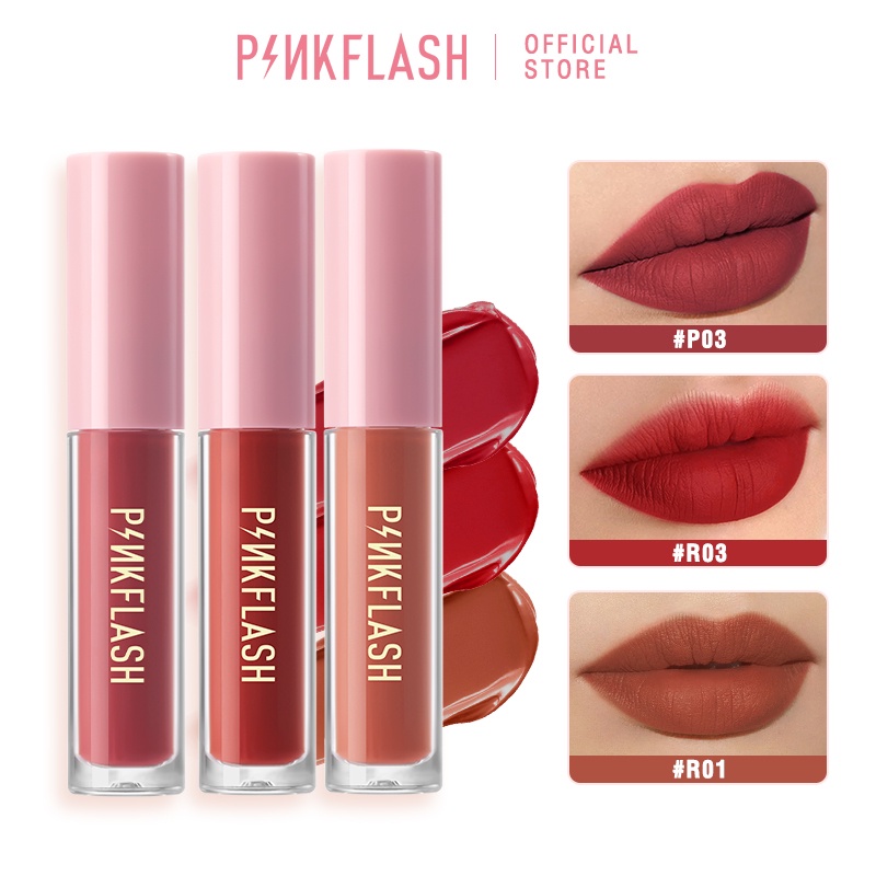 Pinkflash 3 ชิ้น ลิปเซต เนื้อแมตต์ ลิควิด ลิปสติก นุ่ม VE ชุ่มชื้น ลิปทินท์ ลิปกลอส ติดทนนาน เรียบเนียน น้ําหนักเบา
