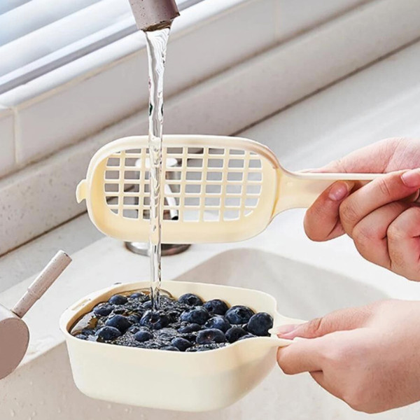 🍒Grace Thai🍒 ตะกร้าล้างผลไม้ มีด้ามจับ ตะกร้าล้างอเนกประสงค์ ของใช้ในครัวเรือน พร้อมส่ง