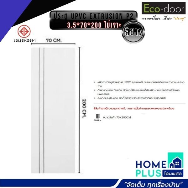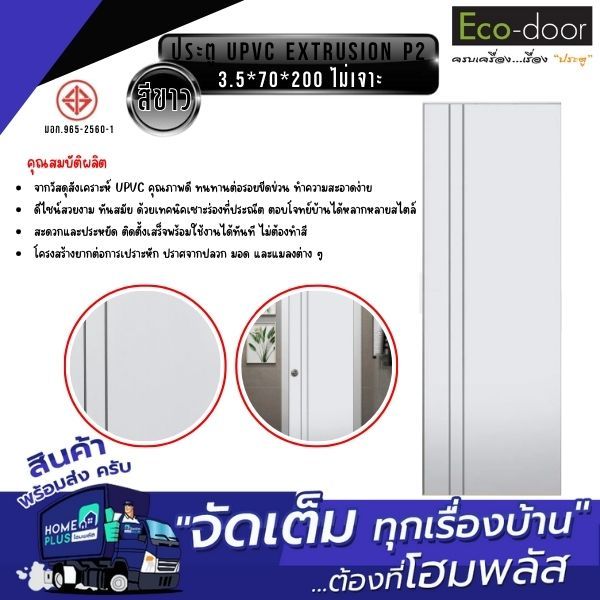 ECO-DOOR ประตู UPVC EXTRUSION P2 3.5*70*200 ไม่เจาะ ขาว