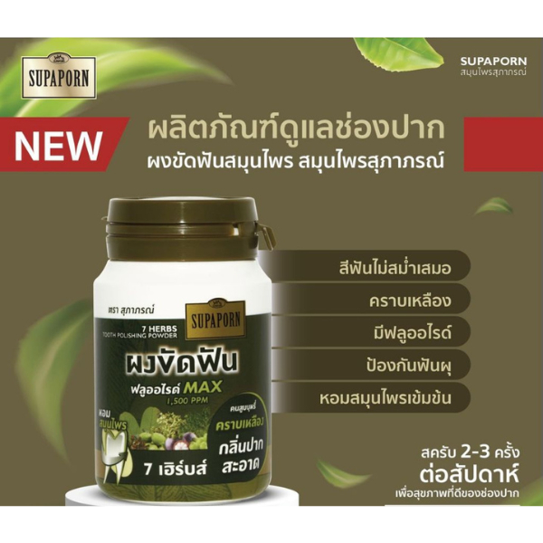 (แพ็ค 2ชิ้น) Supaporn Tooth Polishing Powder 90g สุภาภรณ์ ผงขัดฟัน ผสมสมุนไพร 90กรัม