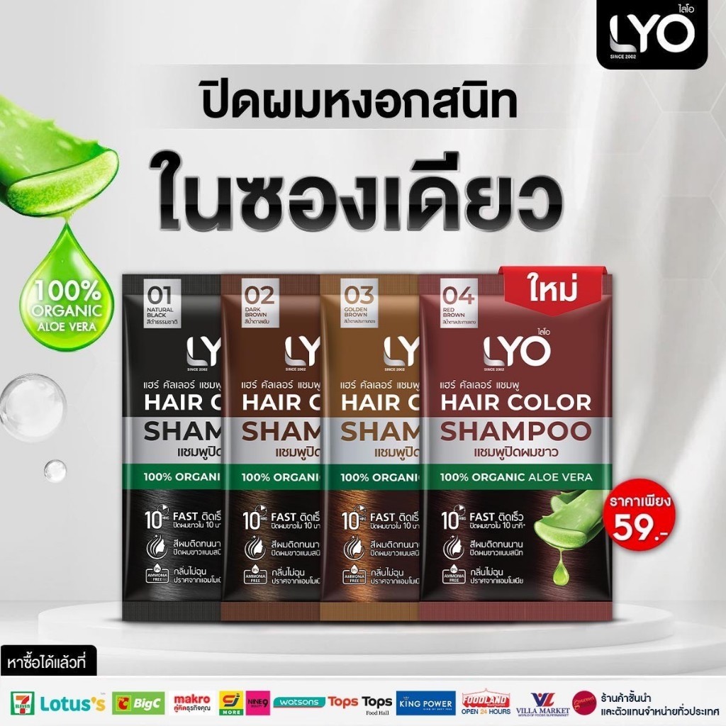 Lyo ไลโอ แชมพูปิดผมขาว 30ml ช่วยให้เส้นผมไม่แห้งเสีย นุ่มสลวย เงางาม แฮร์คัลเลอร์ แชมพูปิดผมขาว