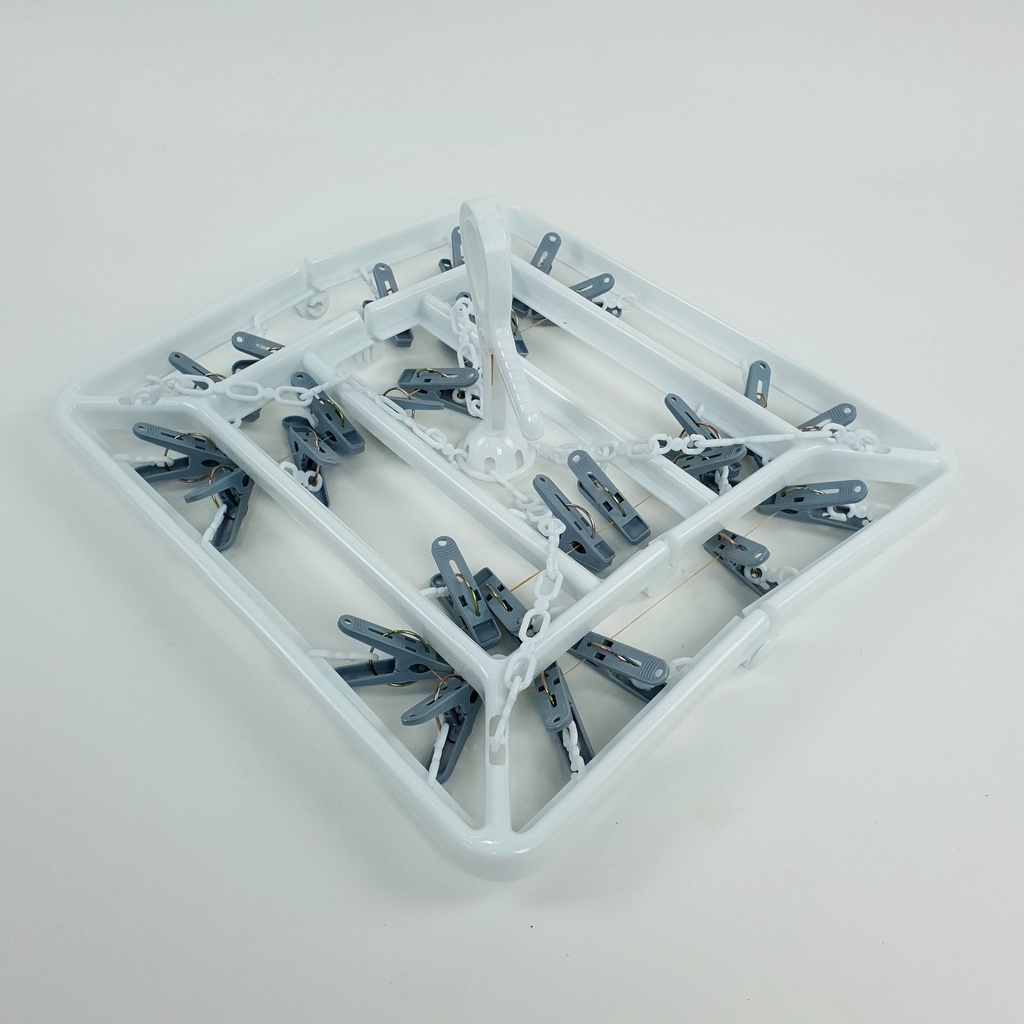 GlobalHouse SAKU ห่วงตากผ้า 28 ตัวหนีบ ขนาด 36.5x33.5x3.4ซม. TG52213 สีขาว พับเก็บได้ สินค้าของแท้คุณภาพดี