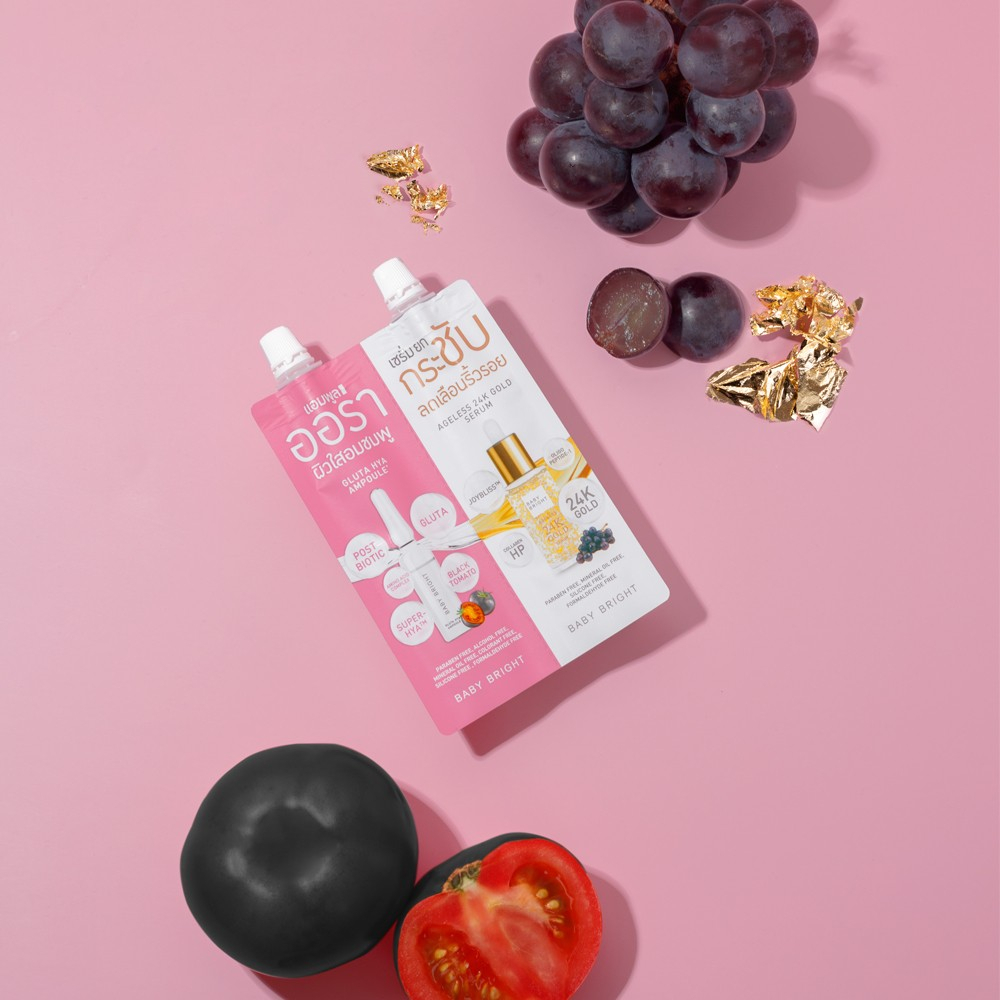 NEW‼【1ชิ้น】🌈เซรั่มซองคู่ บำรุงผิวหน้า⚡ 【ผิวกระจ่างใสอิ่มฟู ยกกระชับ 】Ageless Whitening Set 6g+6g BABY BRIGHT