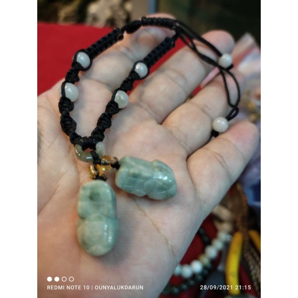 ข้อมือเชือกถักปี่เซียะหยกเขียว เกรดA หรือ #ผีซิว #วัตถุมงคลเรียกทรัพย์