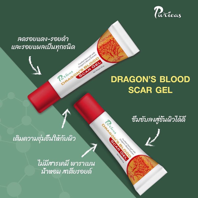 ถูกคุ้มสุด!!! สต๊อกใหม่สุด Puricas dragon's blood scar gel เพียวริก้าส์ ดราก้อนบลัด สการ์เจล