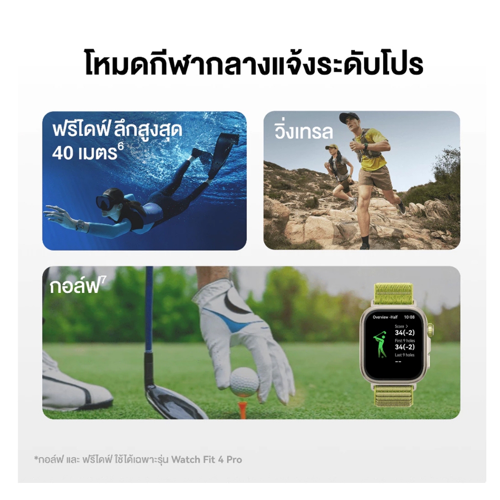 (พร้อมส่ง) HUAWEI WATCH FIT 4 PRO นาฬิกา สมาร์ทวอช | การจัดการด้านสุขภาพขั้นสูง | มีโหมดตีกอล์ฟ และ โหมดดำน้ำ