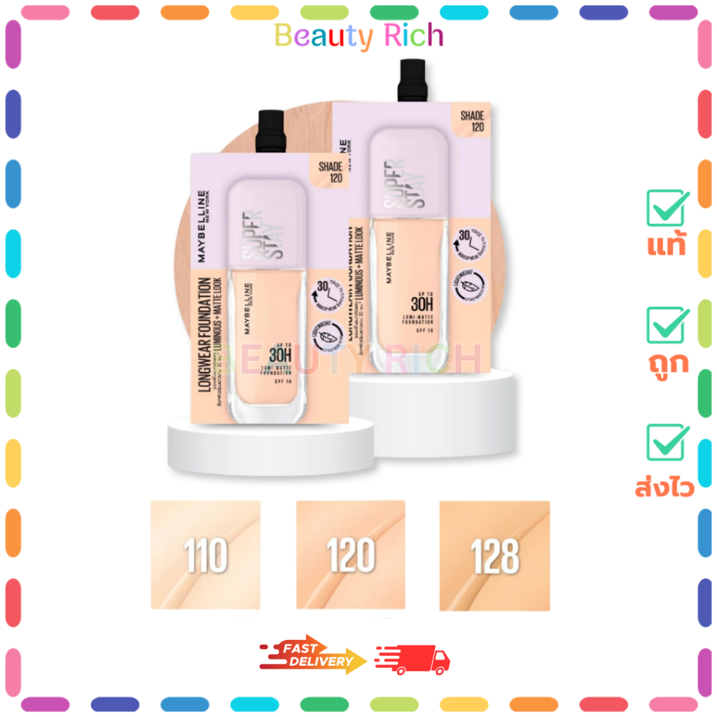 (1 ซอง) Maybelline Superstay Lumi-Matte Foundation(ซองม่วง) เมย์เบลลีน ครีมรองพื้น (5 ml.)