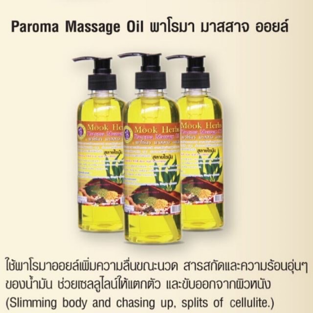 Mook Herbs มุกสมุนไพร น้ำมันนวด พาโรม่า มาสสาจ ออยล์ (นวดกระชับสัดส่วน) 360 ml. เพิ่มการเผาผลาญ สลายไขมัน ลดผิวแตกลาย