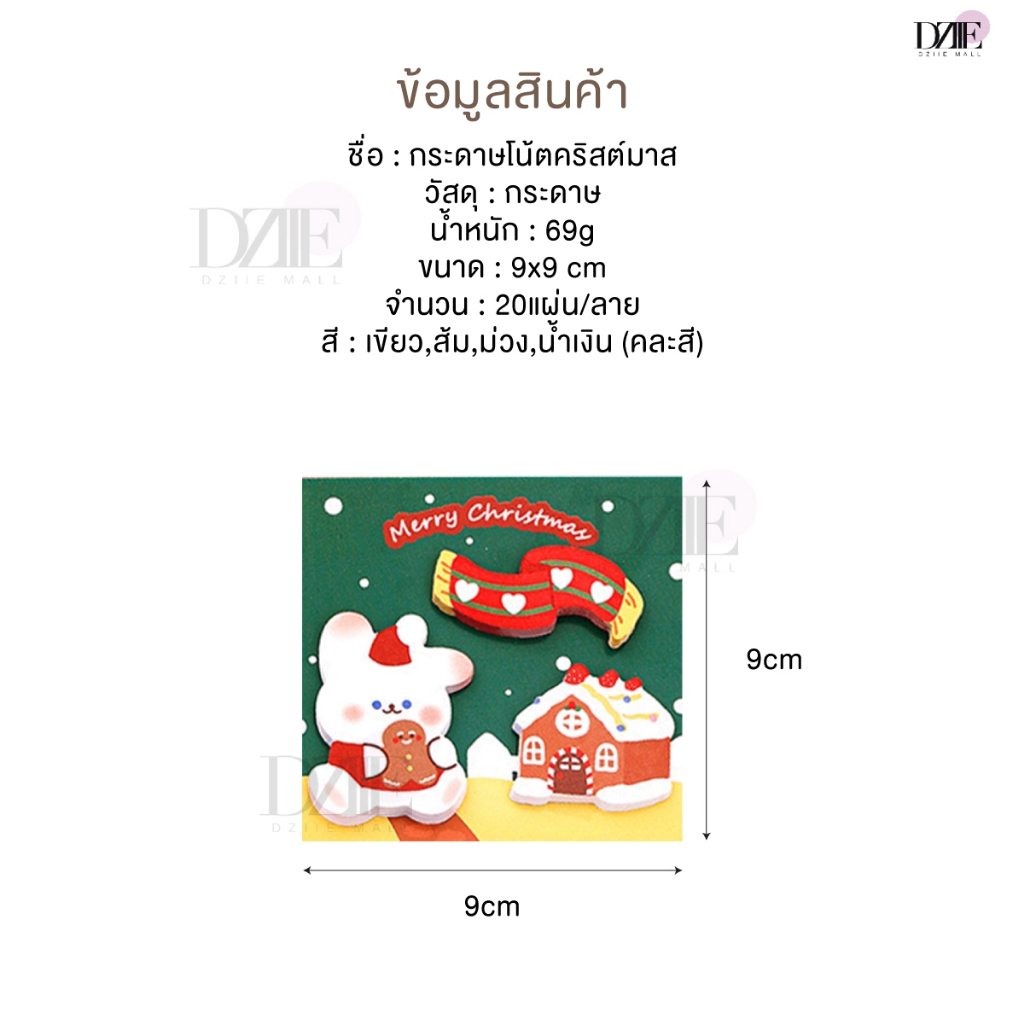 Dziiemall Note Paper กระดาษโน้ต คริสต์มาส ภาพการ์ตูน ตกแต่ง สมุดโน๊ต เครื่องเขียน ที่คั่นสมุด