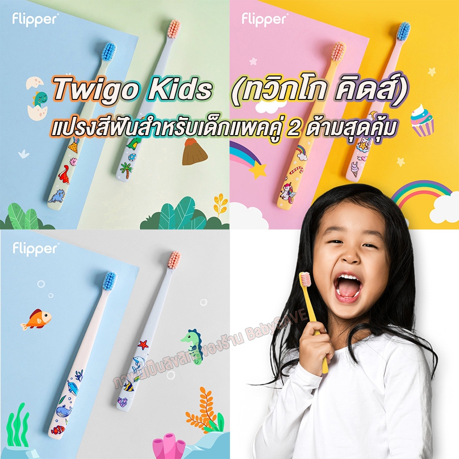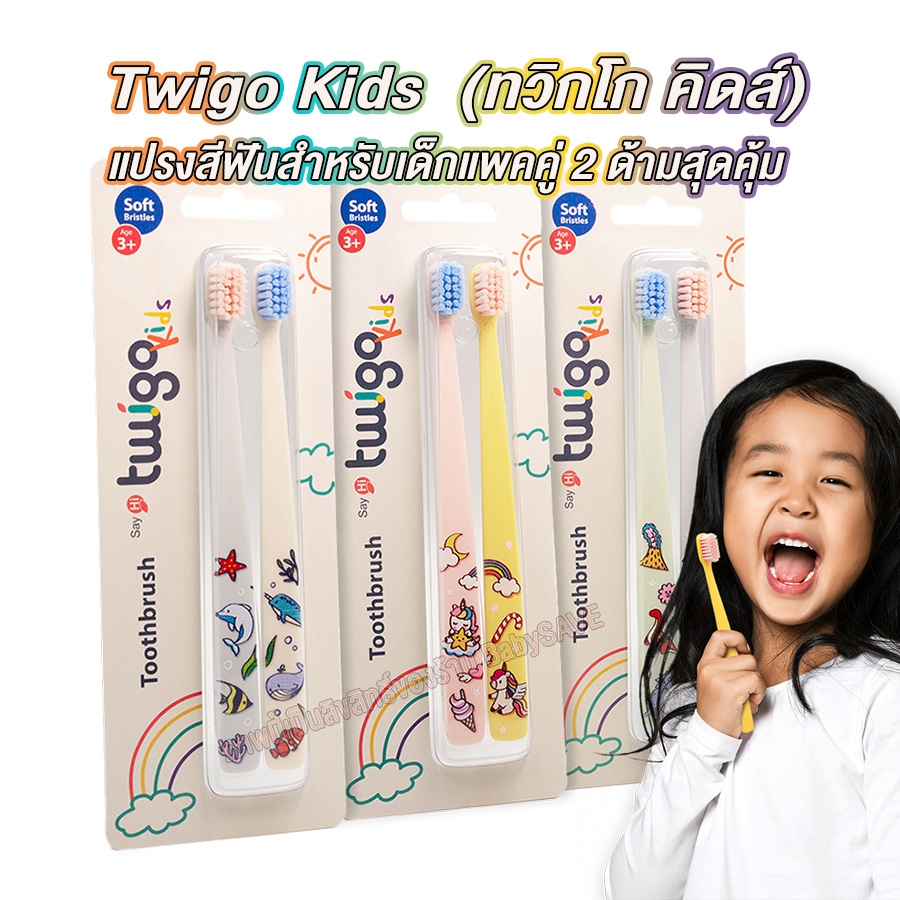 Twigo Kids | ทวิกโก คิดส์ | แปรงสีฟันสำหรับเด็กแพคคู่ 2 ด้ามสุดคุ้ม | สำหรับเด็กอายุ 3ปี+