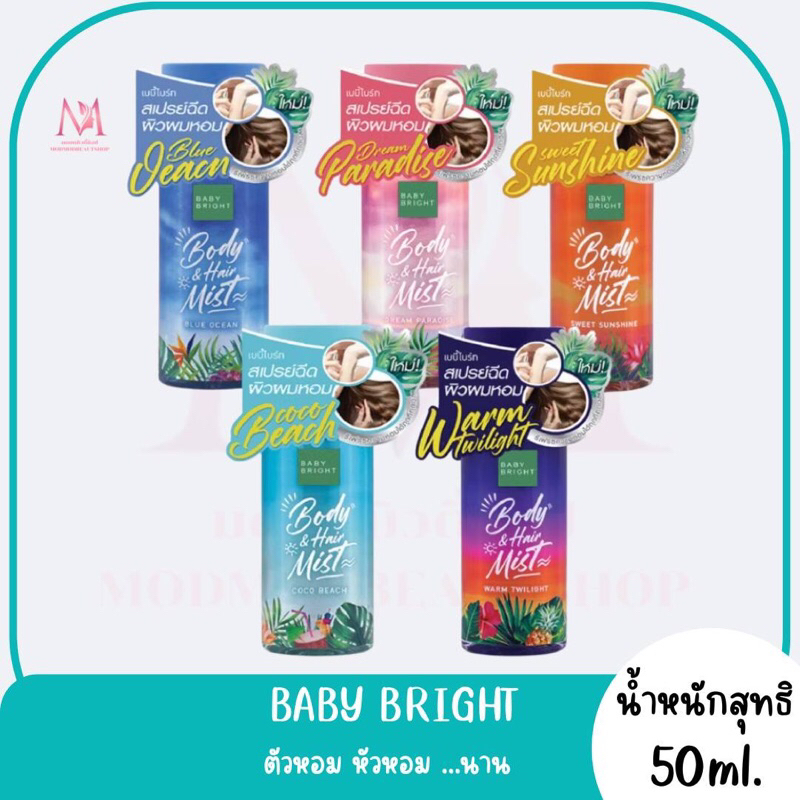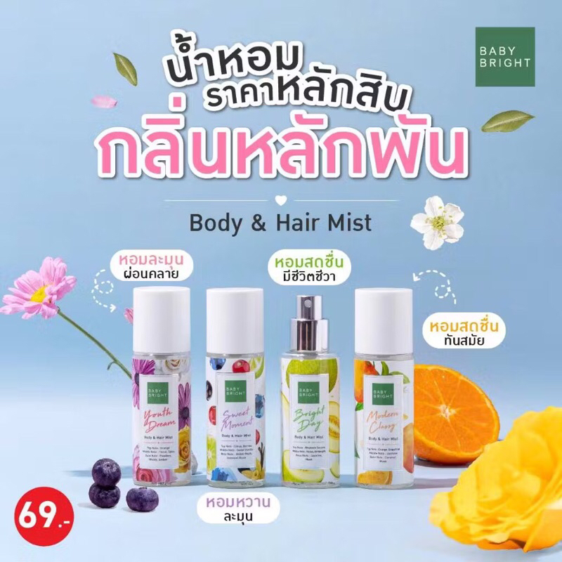 Baby Bright Body & Hair Mist 50ml. เบบี้ไบร์ท สเปรย์น้ำหอม ผิว และ ผม 4 กลิ่น สเปรย์ผมหอม ฉีดผม