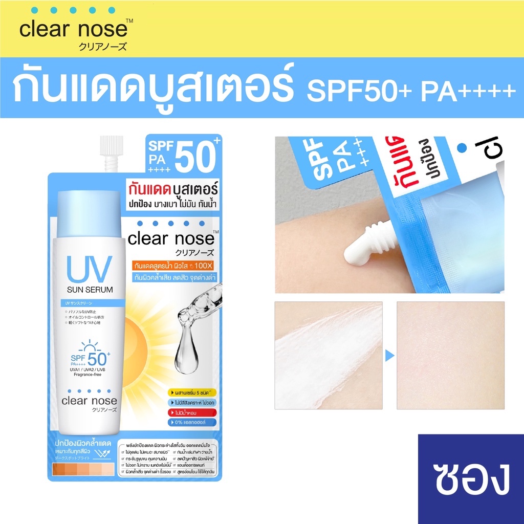 (กล่อง x6ซอง) Clear Nose UV Sun Serum (SPF50+ PA++) เคลียร์โนส ยูวี ซัน เซรั่ม กันแดดบูสเตอร์ เพื่อผิวแพ้ง่ายเป็นสิวง่าย