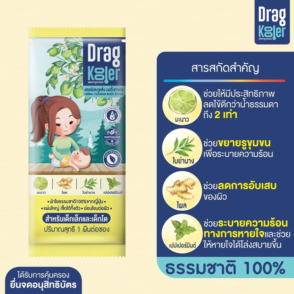 Dragkooler ผ้าเปียกผสมสมุนไพรสำหรับเช็ดตัวลดไข้เด็ก เซต 4 กล่อง