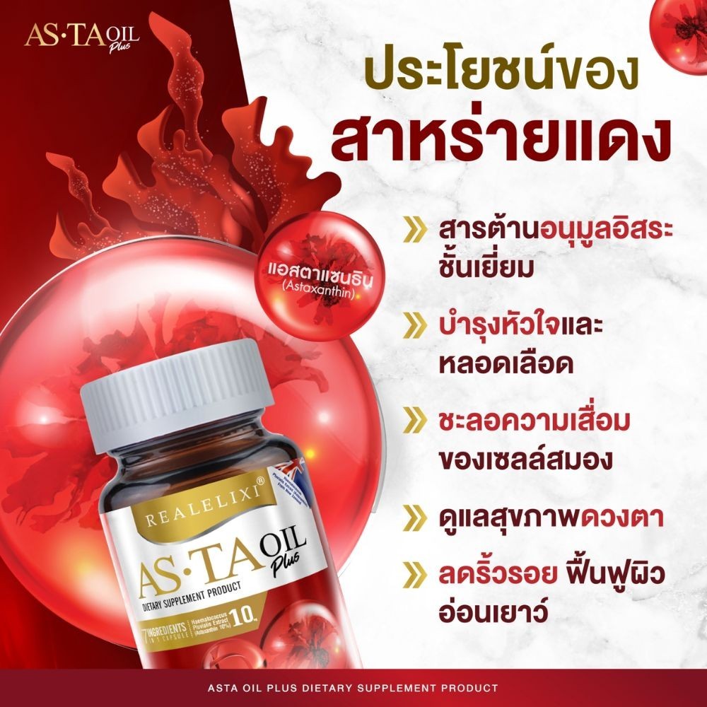 REAL ELIXIR Asta Oil Plus ผลิตภัณฑ์เสริมอาหารสารสกัดจากสาหร่ายแดง (30 แคปซูล)