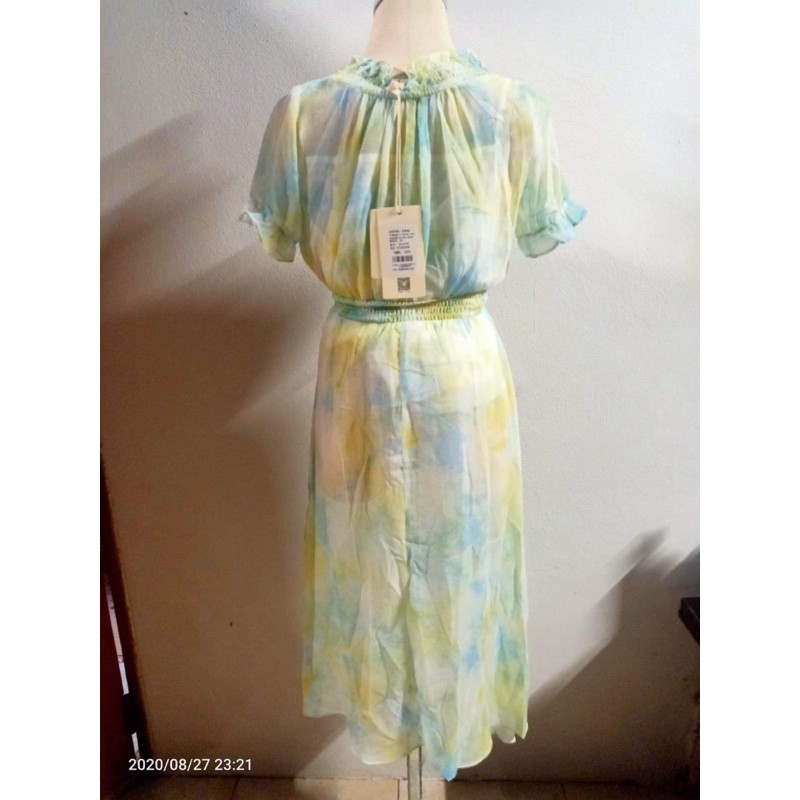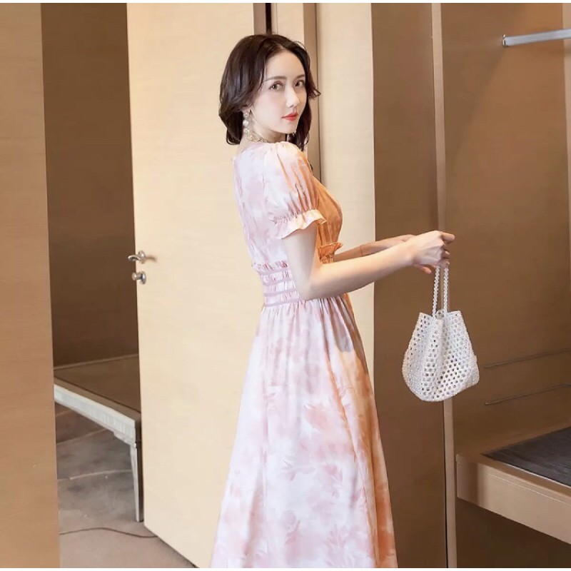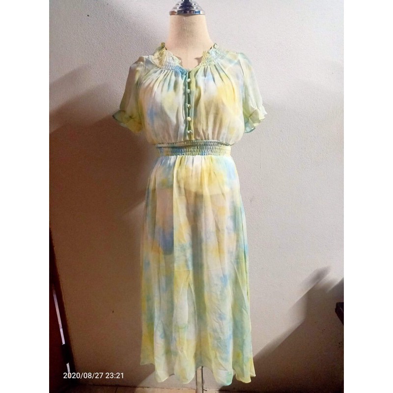 เดรสยาวแขนตุ๊กตา ผ้าซีฟอง แต่งกระดุมหน้า