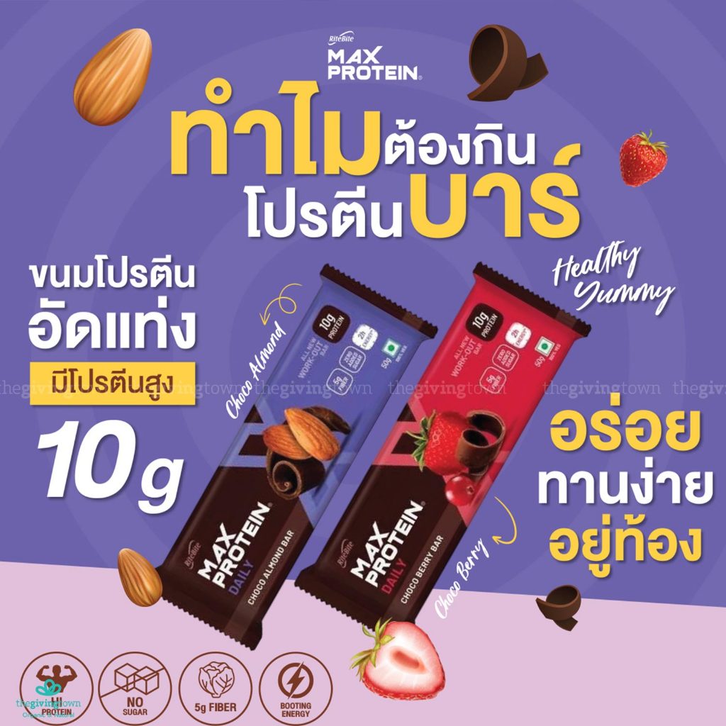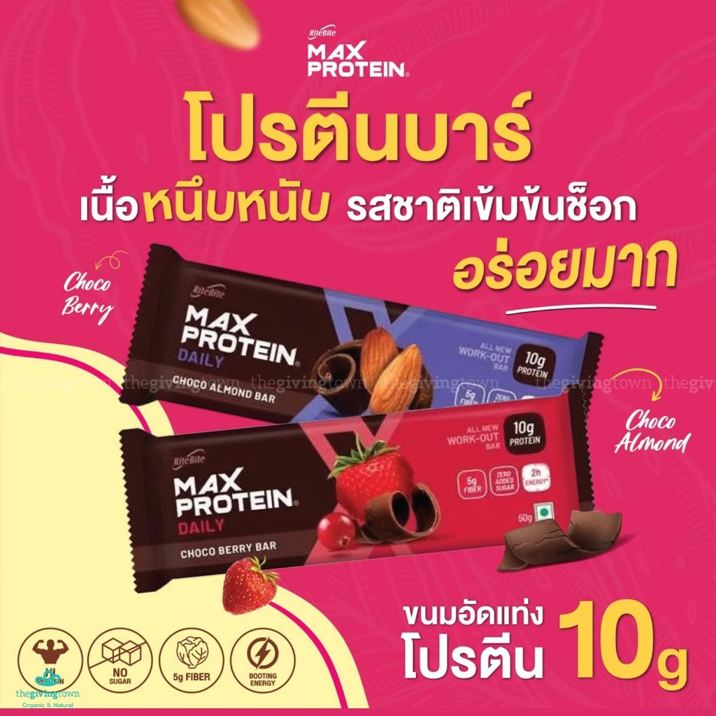 RiteBite Max Protein โปรตีนบาร์ช็อคโกอัลมอนด์ Choco Berry โปรตีน 10 กรัม อร่อย อยู่ท้อง Protein Bar