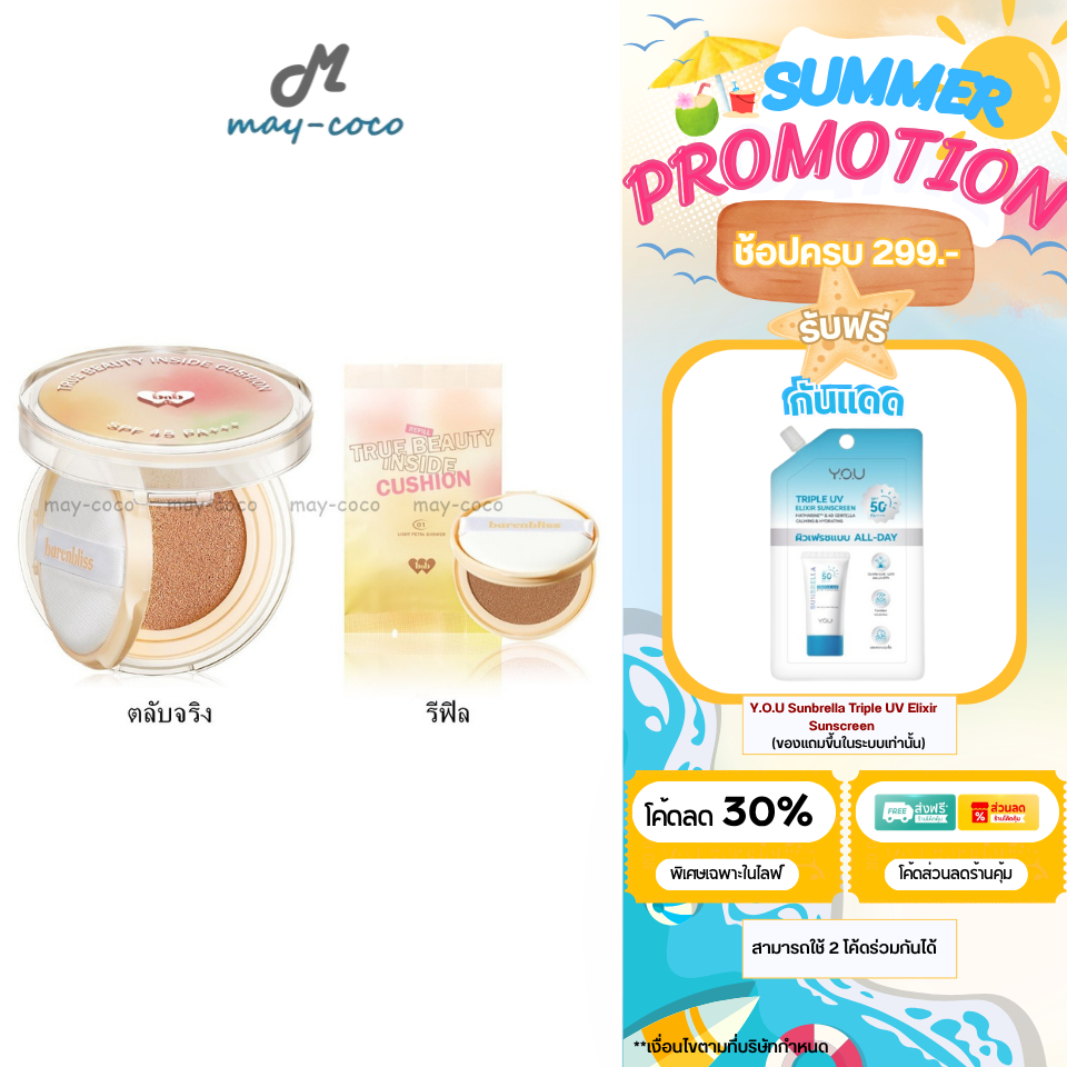 ถูก/แท้/มีไลฟ์ คุชชั่น คูชั่น Barenbliss True Beauty Inside Cushion รองพื้น เกาหลี คุมมัน ปกปิด งานผิว หน้าเนียน