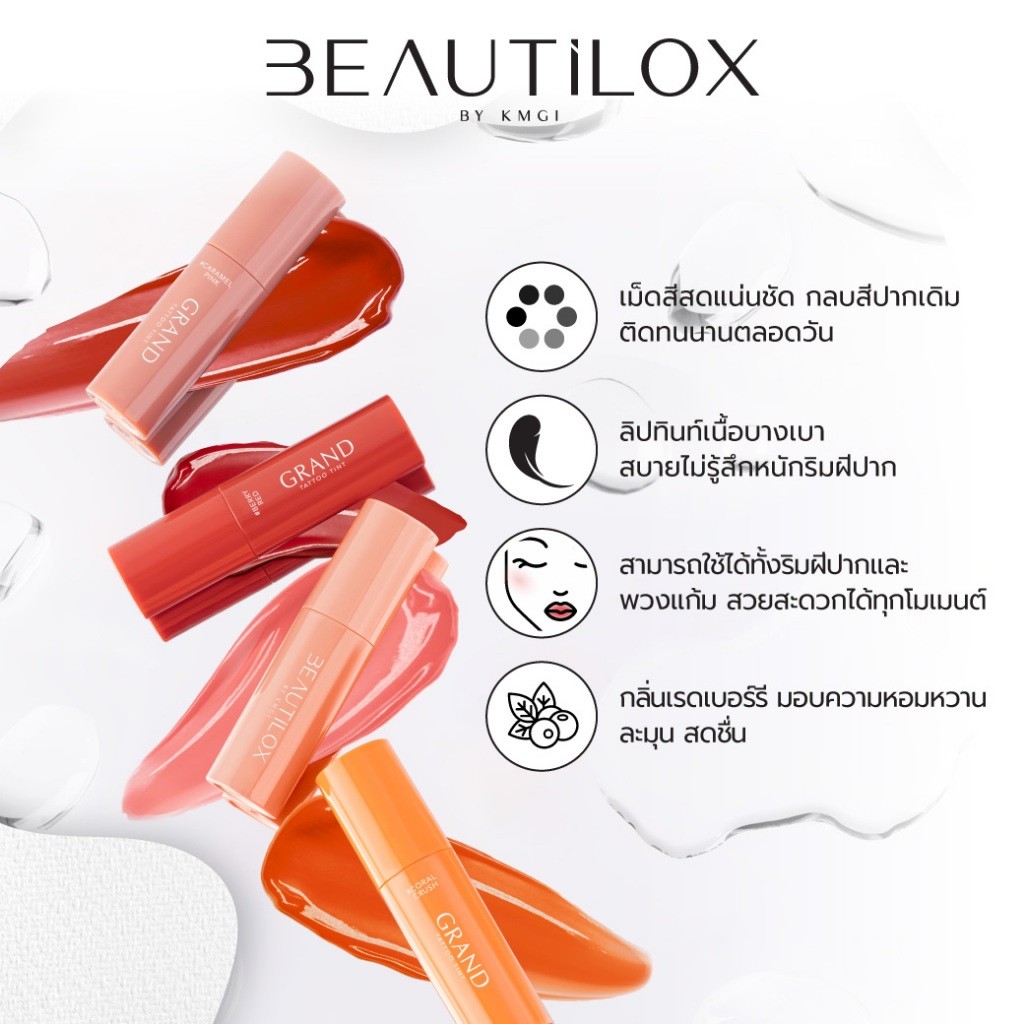 ลิปแทททู ติดทน กันน้ำ ┇ติดทนเม็ดสีชัดเสมือนการสักปาก Beautilox แกรนด์แทททูทินท์ 2.5g บิวตี้ล็อกซ์