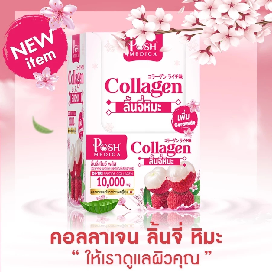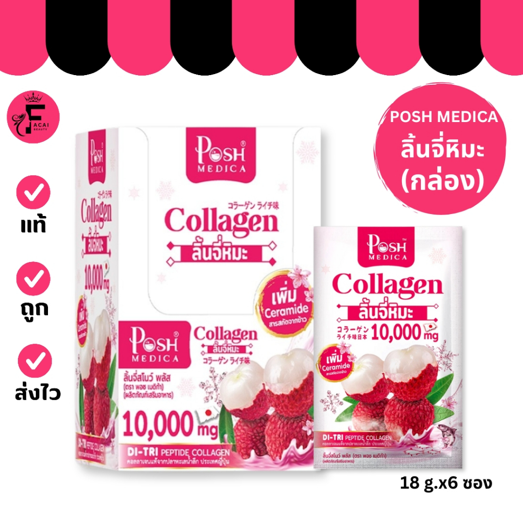 (กล่อง 6 ซอง) Posh Medica ลิ้นจี่หิมะสโนว์ พลัส (ปริมาณ 18 กรัม)
