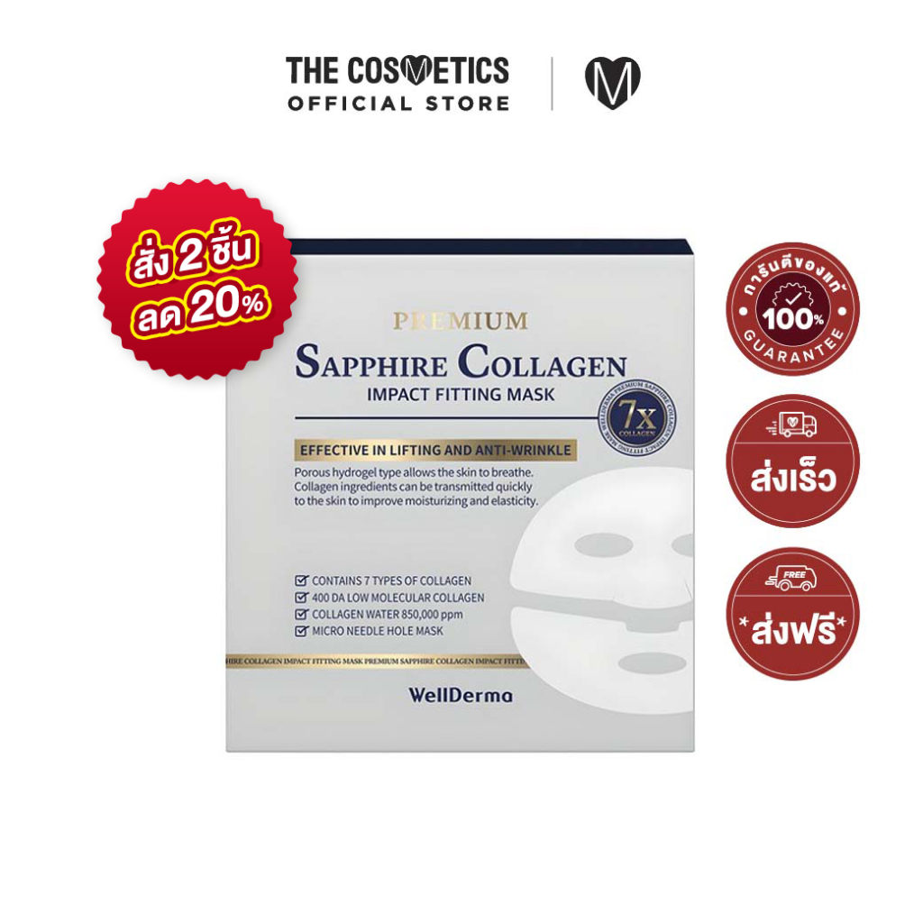 Wellderma Premium Sapphire Collagen Impact Fitting Mask 7X 1 box 4 sheets ชีทมาส์ก ไฮโดรเจล คอลลาเจน