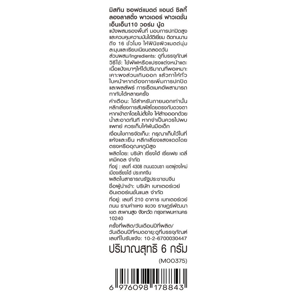 Mistine มิสทิน ซอฟต์แมตต์ แอนด์ ซิลกี้ ลองลาสติ้ง พาวเดอร์ ฟาวเดชั่น 6ก. NN110 วอร์ม นู้ด