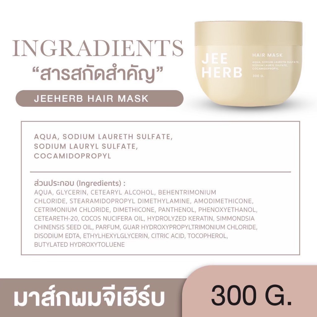 Jee Herb Hair mask จีเฮิร์บ แฮร์มาสก์ ผมสวย ดกดำ นุ่มลื่น เงางาม มีวอลลุ่ม ไม่แตกปลาย