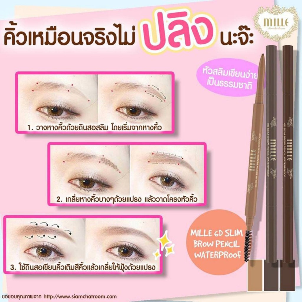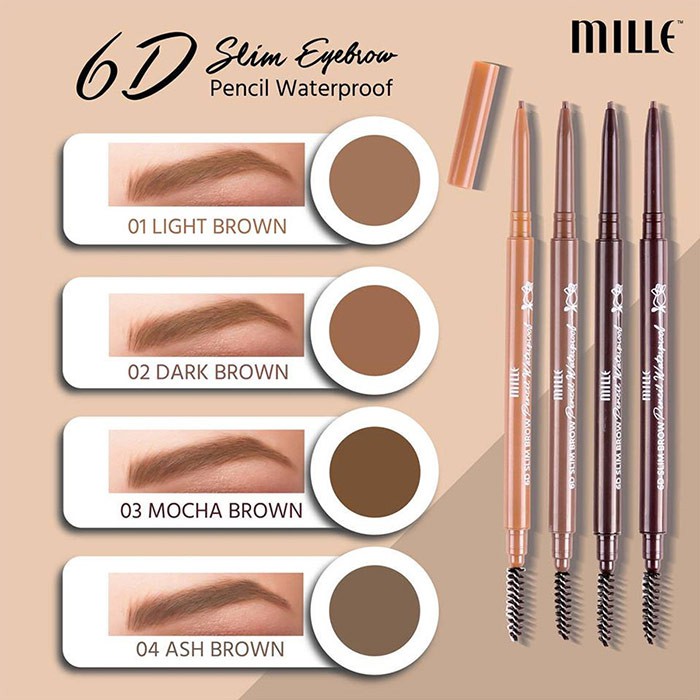 Boombeautyonline | (หัวสลิม / หัวตัด) Mille 6D Slim Brow Pencil Waterproof มิลเล่ ดินสอเขียนคิ้ว หัวสลิม หัวตัด กันน้ำ
