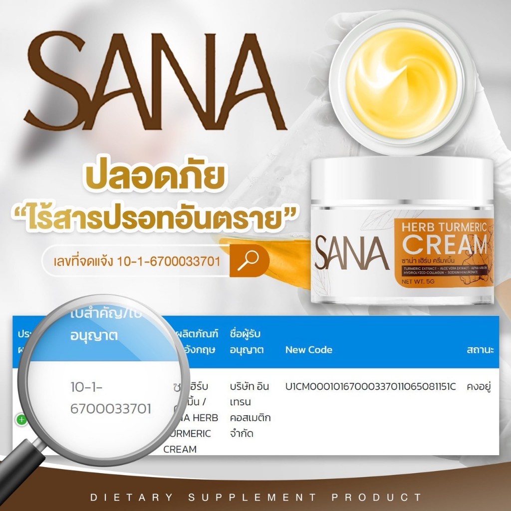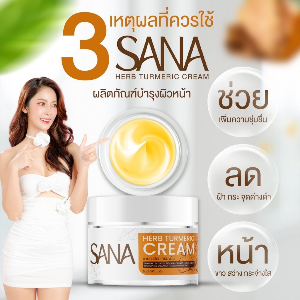 SANA Herb ครีมขมิ้น & กันแดด ครีมทาหน้า สกินแคร์ ลดฝ้ กระ ผิวชุ่มชื้น กระจ่างใส 5 กรัม กลิ่นหอม