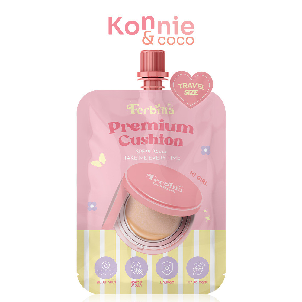 FERBINA Premium Cushion SPF35 PA+++ Travel Size 5g เฟอบีน่า คุชชั่นแบบซอง.