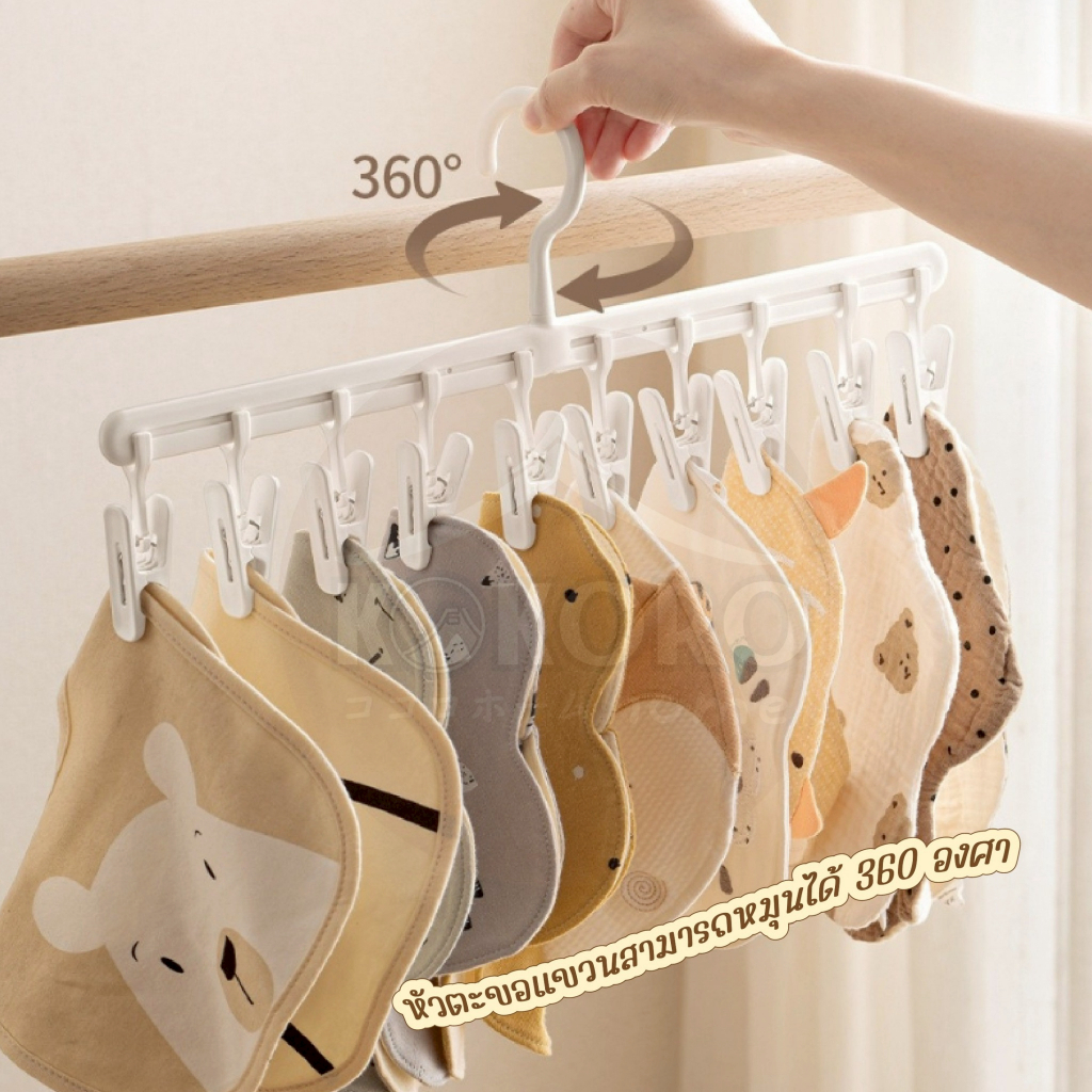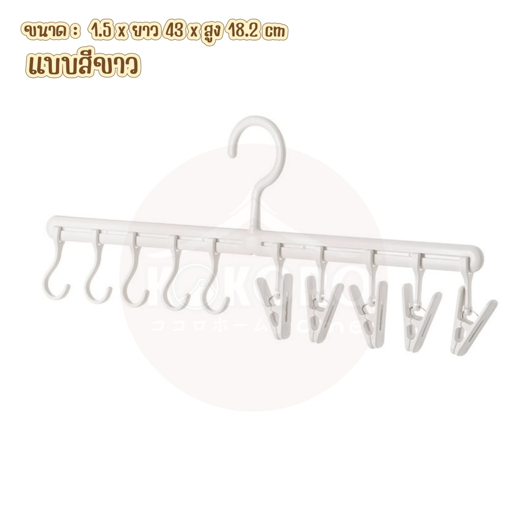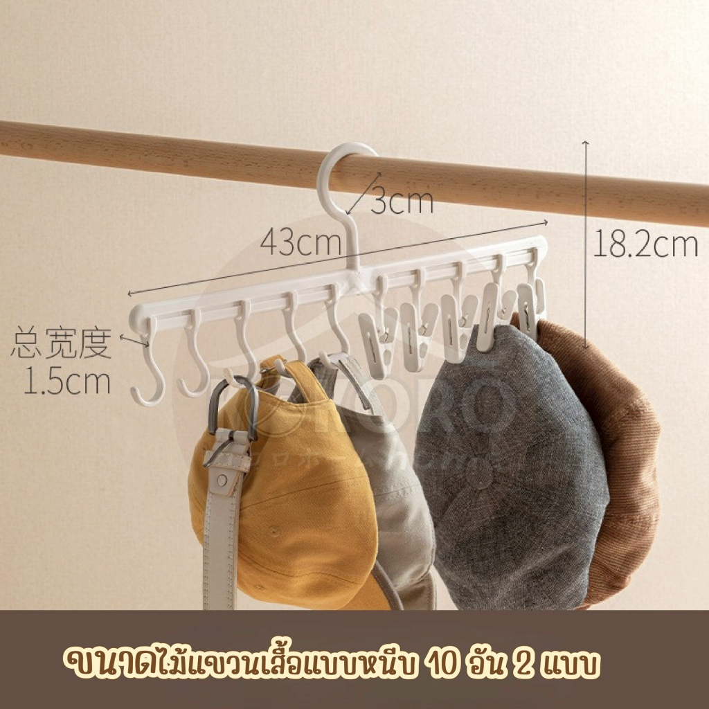 [ส่งด่วน 2 ชม.] Kokoro Home ไม้แขวนผ้า ตัวหนีบ10ตัว 2เเบบ MB189 ที่เก็บหมวก ไม้แขวนหนีบ ไม้แขวนหมวก ที่แขวนหมวก