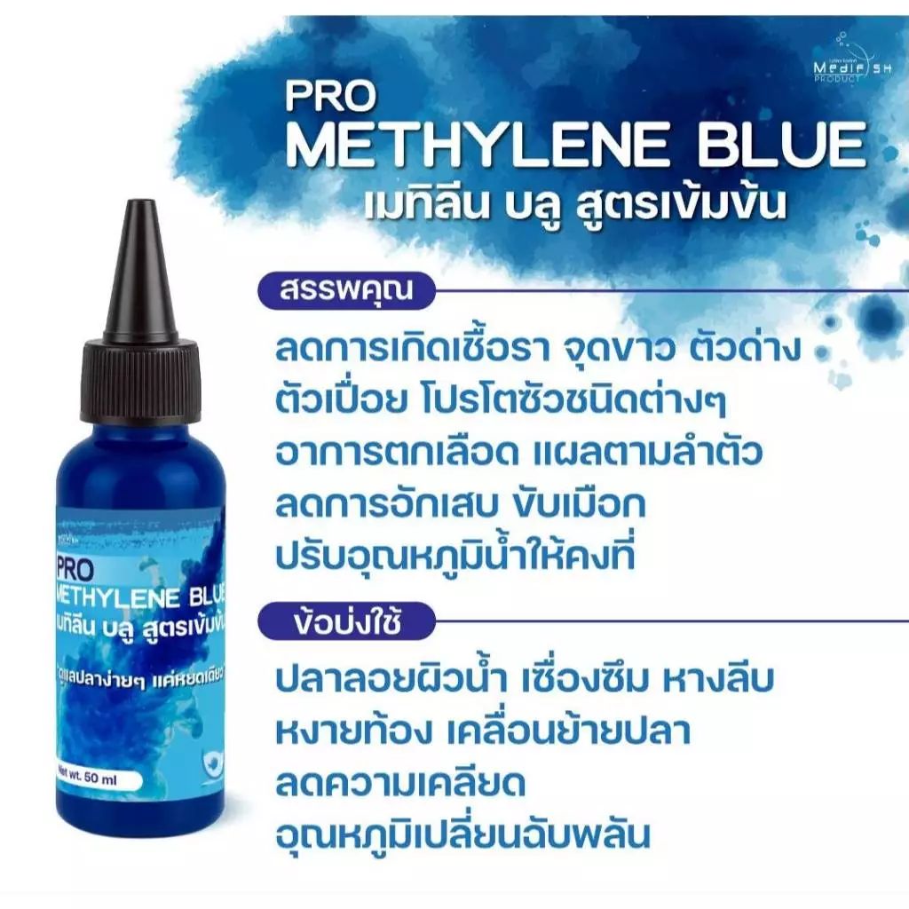เมทิลีนบลู PRO METHYLENE BLUE สูตรเข้มข้น (MEDIFISH) สำหรับปลาสวยงาม 50 มล.