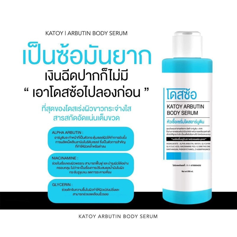 (💧พร้อมส่ง | แท้💯) โดสซ้อ 📍1แถม1📍 katoy arbutin body serum ผิวขาวกระจ่างใส ลดรอยแผลเป็น ลดรอยแตกลาย สารสกัดแน่นฟื้นฟูผิว