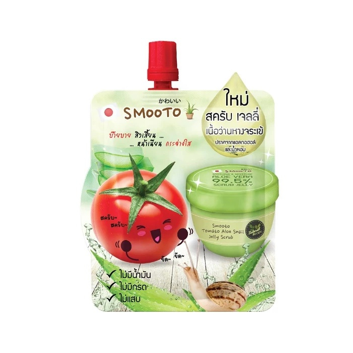 (กล่อง 6 ซอง) Smooto Tomato Aloe Snail Jelly Scrub สมูทโตะ โทเมโท สเนล เจลลี่ สครับ (50 g.)