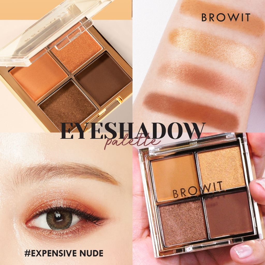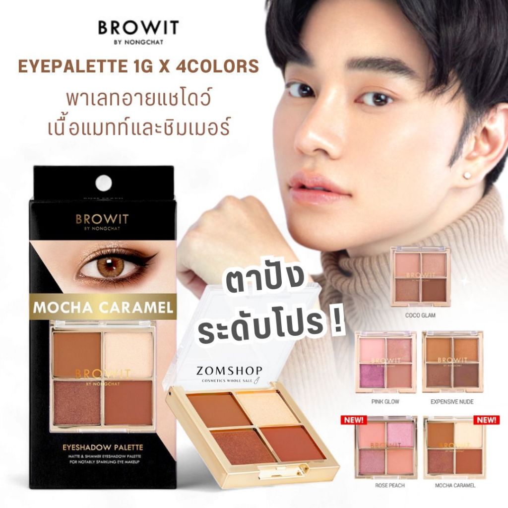 【น้องฉัตร】พาเลทอายแชโดว์ 4สี【เนื้อแมทท์และชิมเมอร์】กันน้ำ BROWIT NUDE EYEPALETTE 1G X 4COLORS